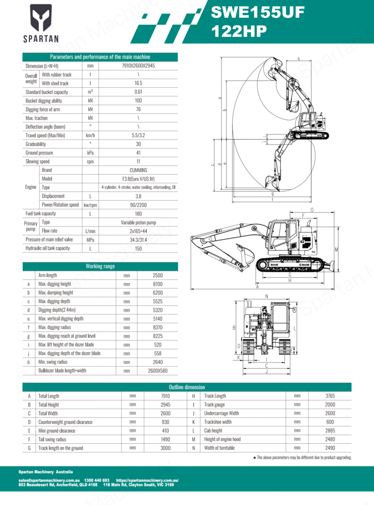 Looking for an excavator that will tear up a job site without taking up too much room? The Sunward SWE155F medium excavator is the perfect fit for large construction – be it roads or buildings, quarrying, demolition, or forestry. It is designed to be versatile and durable, with a long lifetime. The SWE155F’s masterful design, Cummins engine, and enhanced hydraulics system deliver smooth operation and high productivity. This top‑of‑the‑line medium excavator offers excellent performance, comfortable and safe operation, and convenient maintenance.