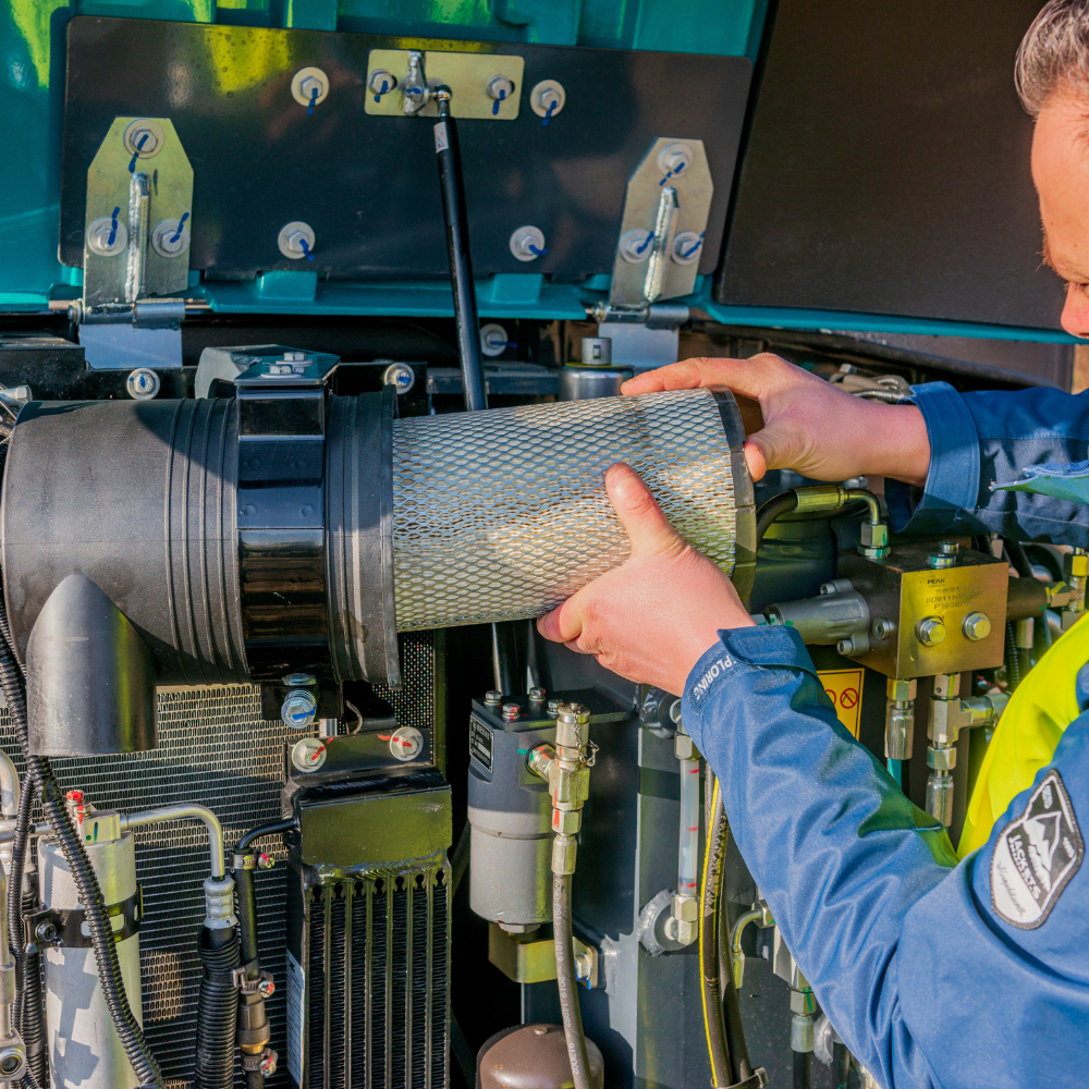The driver cabin has been optimized ergonomically to integrate operator desk, and 7-inch touch screen, to learn about the status of the machine easily.