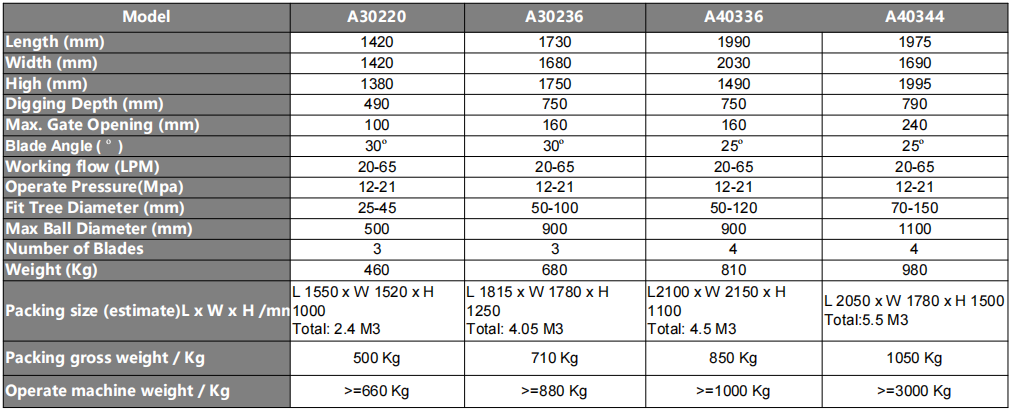 • Nurseries: Harvesting trees from fields for sale or packaging them for transport to new locations. Tree spades with different blade angles are used for various soil types and root-ball shapes.